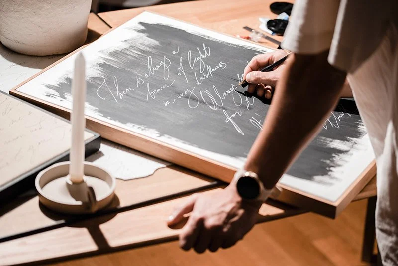 I specialize in on-site personalization through the art of calligraphy, hand engraving and painting on a wide range of products. My work is a reflection of my personal aesthetic, minimalism, natural elements and a love for quiet, sophisticated details.
