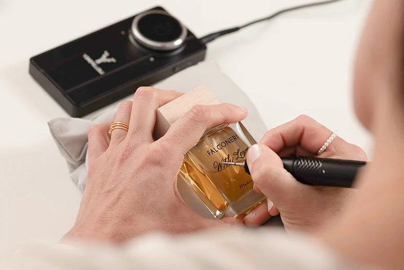 Hand engraving allows for more intricate and unique designs than machines can achieve. I meticulously craft each piece with careful attention to detail, making it a versatile and thoughtful personalization option for brands and private clients. My on-site hand engraving services in Athens, Greece, are perfect for a wide range of objects, from perfume bottles to metal tumblers. Let’s connect to discuss your next project!
